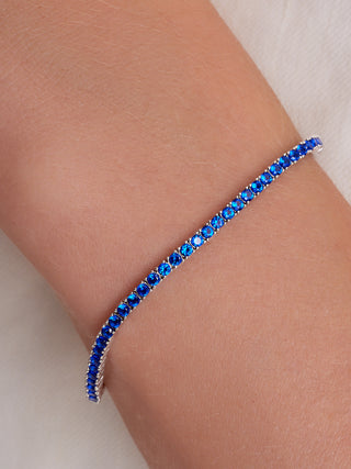 14K Solid Gold Round Cut 1.14 ct. Natural Blue Sapphire Tennis Bracelet