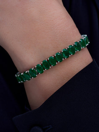 Simulated Emerald Oval Cut Tennis Bracelet in 14K Gold Vermeil