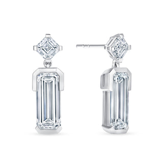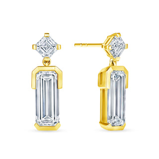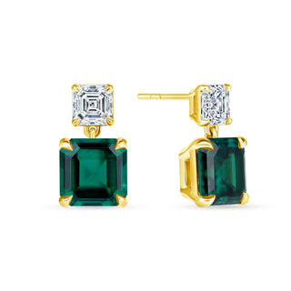 Emerald Lab Gemstone and Asscher Cut Lab Diamond Earrings in 14K Gold