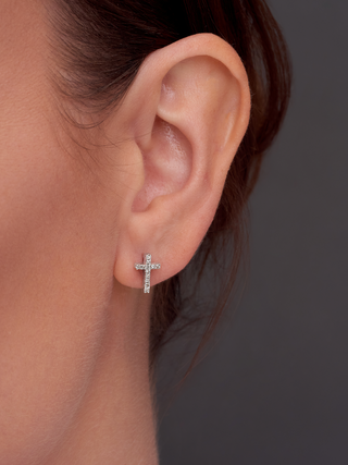 Pave Simulated Diamond Hoop Earrings in 14K Gold Vermeil