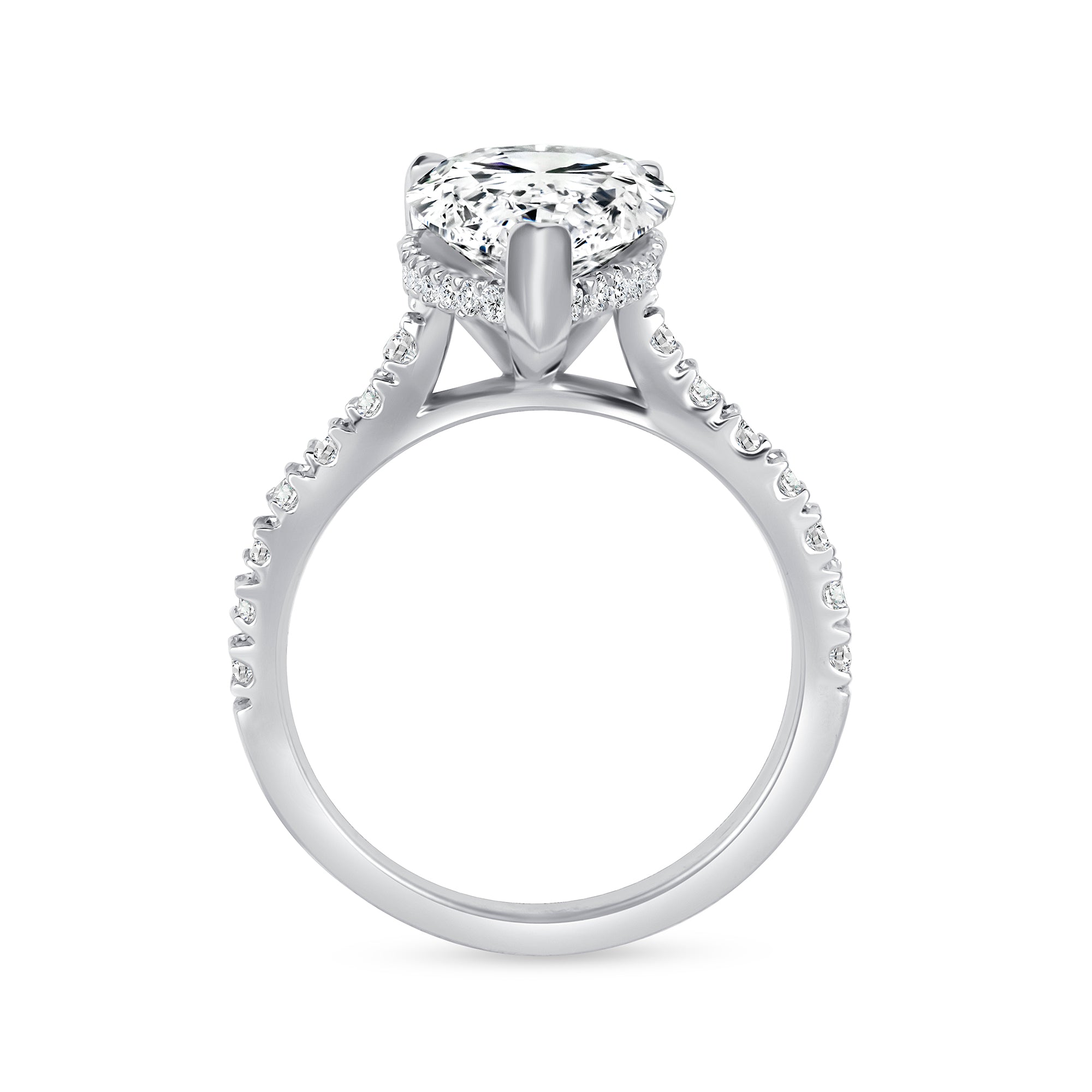Brilliant lab-grown pavé diamonds adds exceptional sparkle and fire along the band of this elegant engagement ring setting, providing the perfect backdrop for the pear cut center stone. Crafted in gold with a graceful cathedral design, this ring blends timeless beauty with modern craftsmanship.